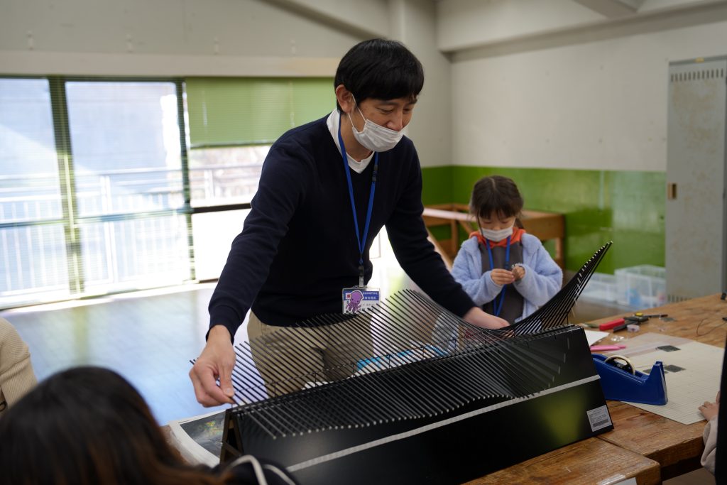11月29日(土)に大隅青少年自然の家で開催された【親子ぼうさいフェスティバル】に、一般教育科 池田准教授による「光のステンドグラス工作」と都市環境デザイン工学科 安井准教授による「消波ブロックの効果体験、トンネルの重要性を知ろう」の2ブースを出展しました!