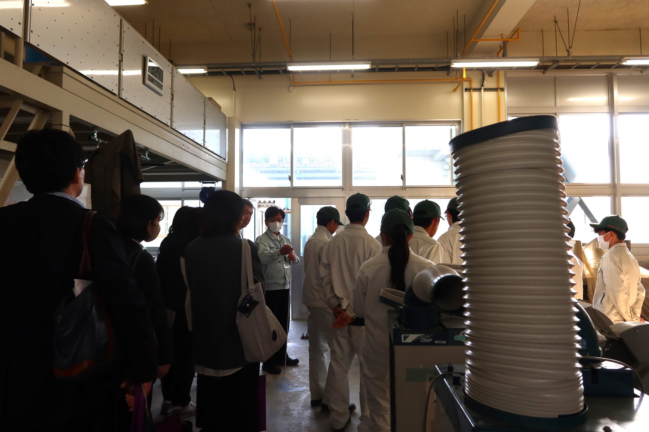 視察団は、本校の教育システム等の概要や学科改組に関する説明を聞いた後、企業家工房、学寮、図書館、厚生会館、及び実習工場の施設見学を行いました。