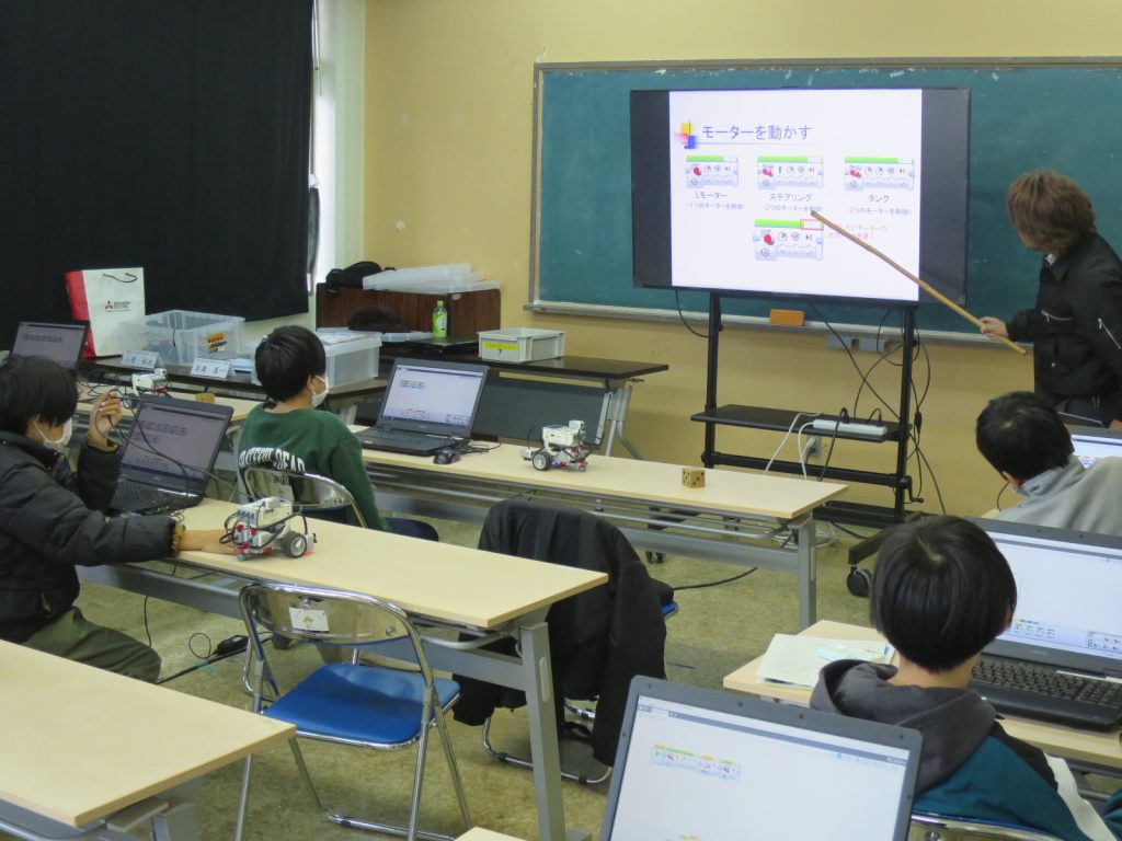 1月24日(土)に垂水市民館で開催された【ICTジュニアリーダー研修会】で、電子制御工学科 吉満教授、小原准教授による「ロボット制御を体験しよう~レゴブロックで作ったロボットのプログラミング体験~」の出前講座を行いました。