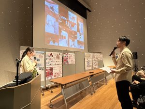 大学、短大、専門学校などの各校から上位作品が集まり、鹿児島高専からは都市環境デザイン工学科で卒業設計を行なった5人が発表し、